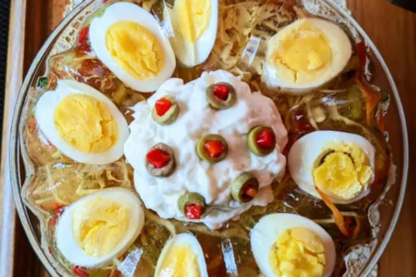 This "salad" popular in the '40s and '50s had cabbage, greens, celery, and bell pepper suspended in seasoned gelatin. Can you name the salad?